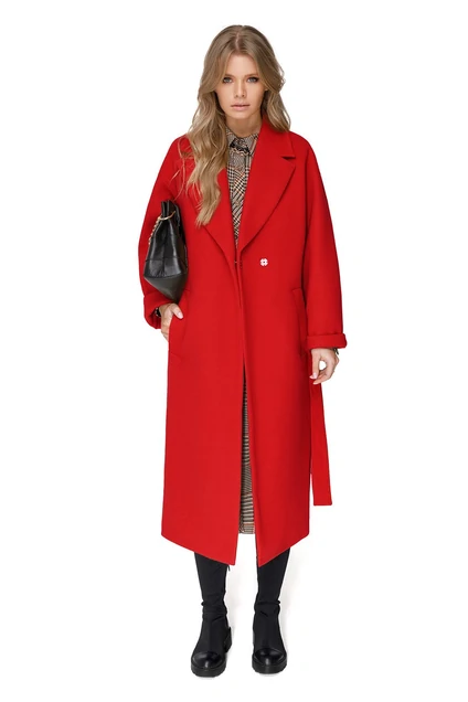 Двубортное пальто-халат свободного покроя со съемным поясом. Детали: прямой силуэт, спущенная линия плеча, пиджачный воротник, без застежки, рукава длинные, перед с прорезными карманами, пальто на подкладке