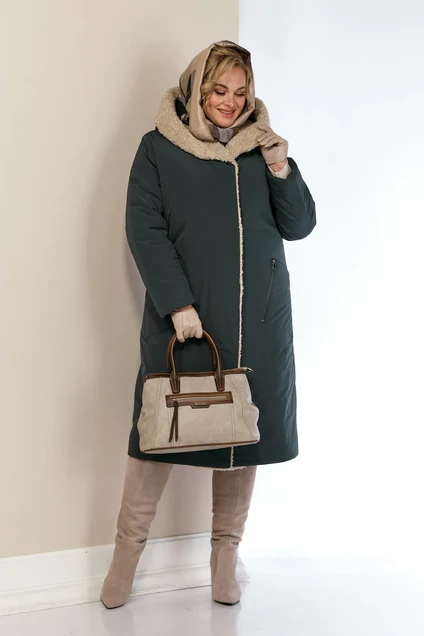 Уютное, элегантное зимнее пальто станет любимой вещью Вашего гардероба! Пальто выполнено из плотной матовой курточной ткани, при этом довольно мягкой, с водоотталкивающей пропиткой. На подкладке. Перед с нагрудными вытачками и функциональными глубокими накладными карманами с декоративной молнией. Рукав втачной двух шовный. Застежка двойная смещенная на тесьму-молнию (двухбегунковая ) по косой и потайными металлическими кнопками. Под борт и капюшон отделаны искусственным мехом, под овчинку, что придает изделию оригинальный вид.