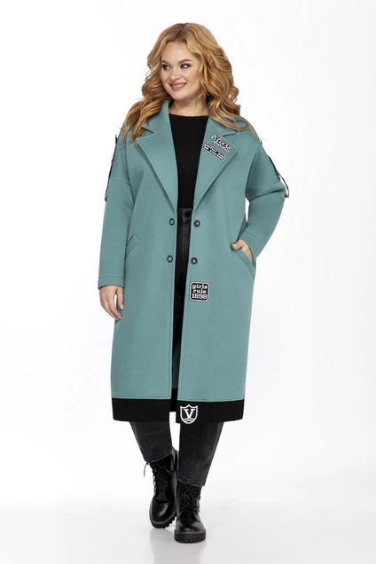 Пальто женское прямого силуэта, без подкладки. По переду выполнены действующие карманы, застежка центральная на кнопки. Модель со спущенной линией плеча деккорирована патой из ЭКО - кожи. Воротник пиджачного типа. Низ изделия обработан довязом контрастного цвета. В предложенной вам модели используется ультра - модная современная фурнитура.