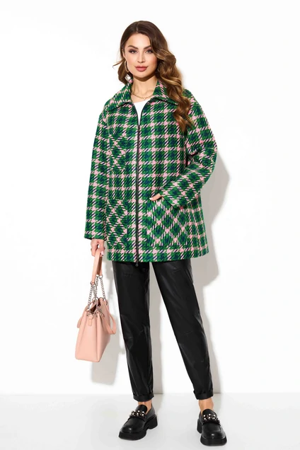 Пальто 3783 зеленый клетка TEZA