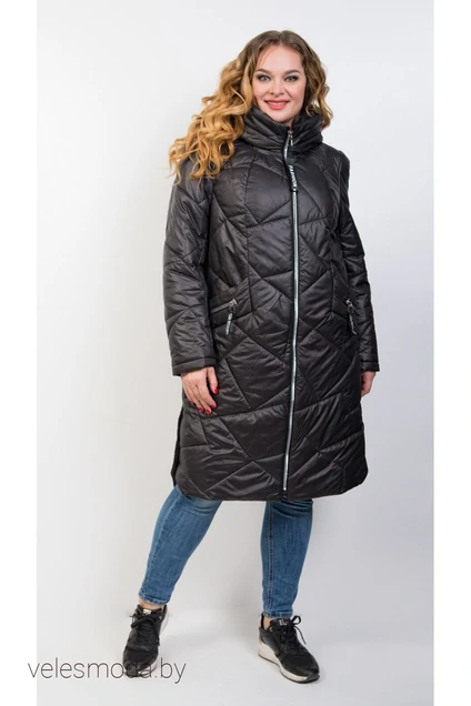 Стеганное пальто на молнии с фигурной линией низа и шлицами на пуговицах внизу боковых швов, привлекает внимание стройным силуэтом, красивыми молниями на листочках, удобным капюшоном. На подкладке.Обмеры 54 размера: длина изделия - 104 см, длина рукава - 65 см, ПОГ - 64 см, ПОР - 22 см.