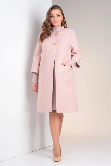 Стильное пальто с застежкой на 2 пришивные кнопки. По переду обработаны карманы. Ткань пальтовая. Изделие на подкладке. Длина - 104 см.