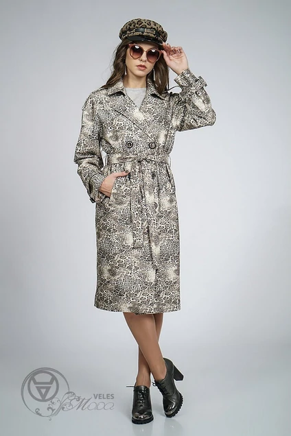 Плащ прямого силуэта со спущенной линией плеча, по плечевому шву – погон. Плащ со смещенной застежкой на три пробивные петли и пуговицы, с тремя симметрично расположенными пуговицами и с внутренней застежкой на одну пробивную петлю и пуговицу. Перед с боковыми прорезными карманами с листочкой с втачными концами. Спинка со средним швом. Рукава одношовные, втачные, понизу с патой, продергивающейся через три шлевки и застегивающейся в пряжку. Плащ на подкладке. Длина плаща по среднему шву спинки во всех р-ах -105 Длина рукава во всех р-ах – 54,5 Ширина рукава на уровне глубины проймы ½ - р46-20,8, р48-21,5, р50-22,3 Ширина плеча – р46-20, р48-20,2, р50-20,4 ОГ – р46-106, р48-110, р50-114 ОТ – р46-106, р48-110, р50-114 ОБ – р46-106, р48-110, р50-114