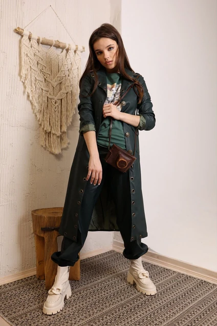 Крутой кожаный кардиган на подкладке с декоративными блочками по борту.