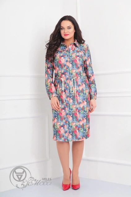 Длина изделия 92 см Длина рукава 61 см. Плащ женский прямого силуэта из джинсовой ткани, длиной ниже колена. Застёжка – планка, застёгивающаяся на пробивные металлические кнопки. Перед с фигурными кокетками, отлетными по нижнему краю, и вертикальными рельефами. Спинка со средним швом, фигурными кокетками, отлетными по нижнему краю, и вертикальными рельефами. Линия низа фигурная. На уровне талии по платью настрочена кулиса. Рукава втачные 2-х шовные длинные. По низу рукава притачана манжета на резинке. Воротник рубашечного типа с отрезной стойкой, которая застёгивается на кнопку. В качестве отделки использован хлопковый шнур, втянутый в кулису, и металлический наконечник на нём. На концах воротника и по отлетным краям кокеток пробиты кнопки