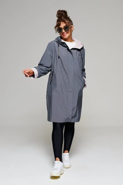 Стильный женский плащ из гладкокрашеной полиэфирной ткани; на синтетической подкладке; прямого силуэта, базового кроя.
