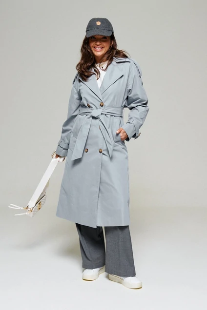 Стильный женский плащ из гладкокрашеной полиэфирной ткани с добавлением натуральных волокон; на синтетической подкладке; прямого силуэта, базового классического кроя.
