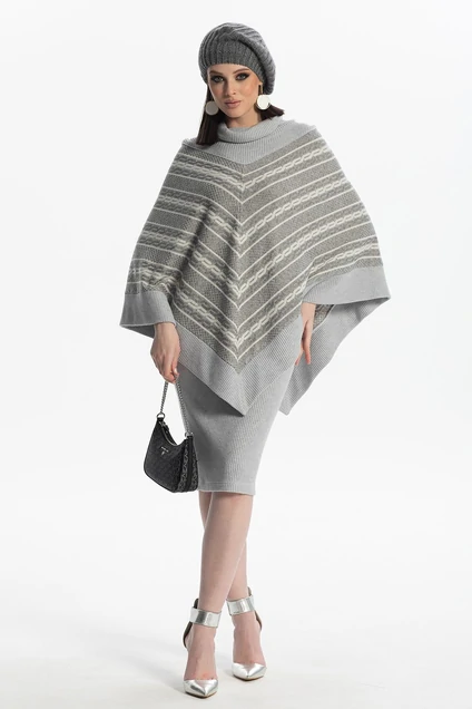 Пончо из французского вязанного трикотажа. Воротник под горло. Длина пончо по переду от горловины до низа 77 см