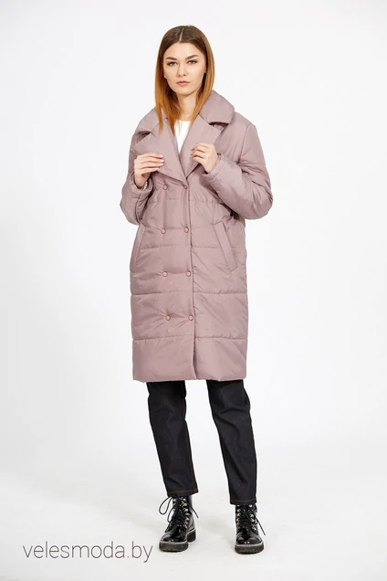Плащ выполнен из плащевой ткани, простеганной с холлофайбером. Плащ прямого силуэта, длиной чуть выше колена. Спереди прорезные карманы с листочкой. Застежка на кнопки. Спинка цельная. Воротник пиджачного типа с отрезной стойкой. Рукав втачной, двухшовный. Низ рукава на эластичной тесьме. Плащ на притачной по низу подкладке. В комплект входит пояс из основной ткани.