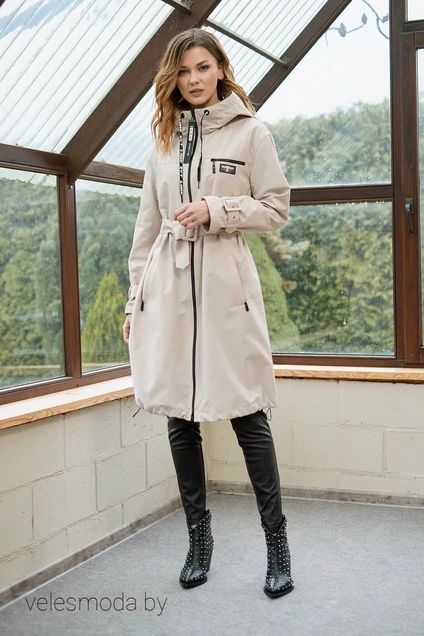Практичный плащ-одежда, без которой не обойтись. Он гарантирует Вам лучшую и очень стильную защиту от непогоды в межсезонье. Плащ, выполненный в стиле new look идеально дополняет образ как с платьями и юбками, так и со всеми видами брюк. Плащ свободного, расширенного к линии низа А-силуэта с втачным капюшоном и центральной застежкой на тесьму-молнию. Рукава втачные двухшовные на слегка спущенной линии проймы. По низу рукавов шлевки с регулирующей ширину рукава патой. Перед с горизонтальными кокетками и карманами с листочками. Верхний прорезной и нижние карманы фиксируются тесьмой-молнией. Капюшон свободной формы с кулиской по линии отлета, оформленной декоративными люверсами и отделочным шнуром. Низ изделия регулируется шнуром с фиксаторами. Плащ на подкладке. Для создания разных образов мы дополнили его широким съемным поясом на пряжке. Длина изделия по спинке около 100 сантиметров длина рукава около 61 см.