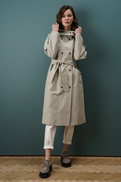 Модный плащ -это в первую очередь практичность и разнообразие. Стиль кэжуал не теряет популярности весной 22 года. Плащ с капюшоном - одна деталь превращает обычный плащ в ультра-модную новинку. Актуальная длина, прямой силуэт, смещённая застёжка на два ряда кнопок. Рукава втачные двухшовные на слегка спущенной линии проймы, с широкими патами по линии низа, на кнопках. Карманы наклонные прорезные с широкими листочками, фиксирующимися кнопками. Капюшон втачной с боковыми частями и широким отлётом. Плащ дополнен широким съёмным поясом. Плащ на подкладке. Длина изделия по спинке около 105 см. Длина рукава около 61 см.