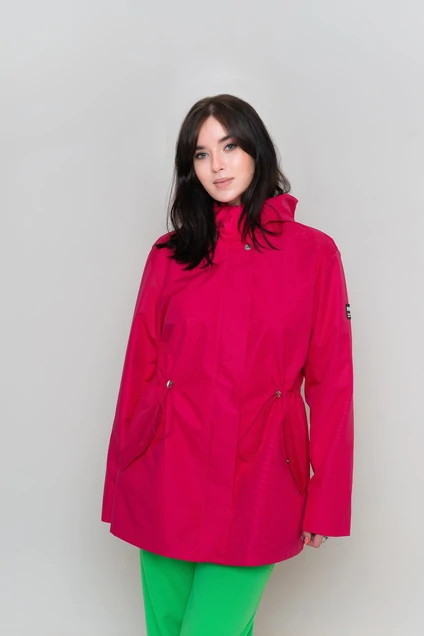 Современный молодежный легкий плащ ( парка ) на подкладке с капюшоном, , с застежкой на молнию,закрывающуюся планкой на кнопках декор,из ткани плащевой с пропиткой водооталкивающей прямого силуэта,обьемной формы со спущенной линией плеча.Перед с кулиской по линии талии с втянутым внутрь шнурком.Наклонные карманы с клапаном и фиксация на кнопку.