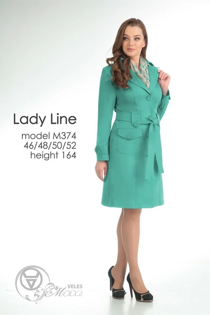 Плащ женский из ткани хлопок с полиэстером. Плащ однобортный, с центральной бортовой застёжкой на прорезные петли и пуговицы. По переду наастрочены функциональные карманы. В плаще есть съёмный пояс, который продевается через паты по переду и спинке. В низу по спинке отлетная шлица. Рукав двухшовный, по низу рукава пришиты паты. Плащ на подкладке. Длина плаща - 97 см. Длина рукава - 62 см.