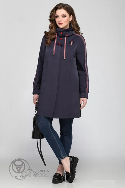 Пальто женское демисезонное,слегка расширенное к низу. Застежка Центральная на петли пуговицы,ниже-супатная. Полочка с уельнокроеным рукавом и вертикальным рельефом. в шве рельефа карман. Рукав из нескольких деталей,низ рукава на манжете с резинкой (ширина резинки 5см). Спинка со средним швом и рельефами. Воротник с отделочной деталью,заложенной складками. На планке воротника люверсы для продеваня шнура. Швы пальто отстрочены отделочной строчкой. Пальто на подкладке. Низ подкладки отлетной. Длина по плечевому шву 87см, длина рукава 58см с манжетом.