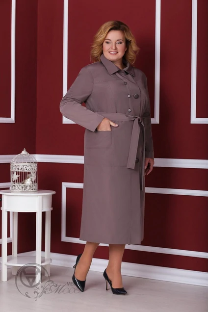 Ткань: плащевка Вырез горловины: фигурный Рукав: длинный Длина рукава: 60 см. Длина изделия: 125 см. Статус модели: повседневное Силуэт: прямой Цвета: серый Вид застежки: пуговицы Описание: Плащ прямого силуэта с кокеткой по переду и спинке, с фигурными рельефами и накладными карманами. Спинка со средним швом. В боковых швах-разрезы. Рукав втачной двухшовный, со слегка спущенным плечом. Застежка на металлические пуговицы разного диаметра.