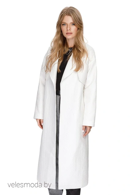 Стеганый плащ свободного покроя с отлетными кокетками. Детали: прямой силуэт, спущенная линия плеча, пиджачный воротник, без застежки, рукава длинные, карманы в боковых швах, шлевки и съемный пояс, на подкладке