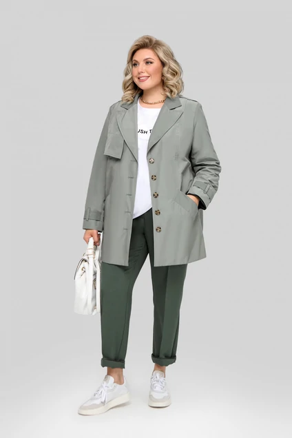 Женский укороченный тренчкот (ветровка) прямого силуэта, выполненный из плотной плащевой хлопковой ткани с водоотталкивающей пропиткой.