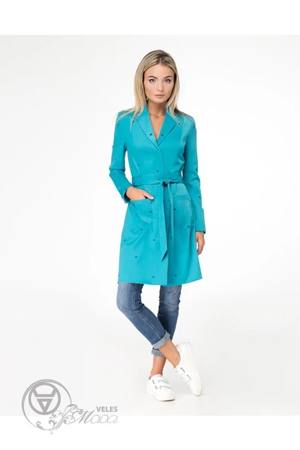 Плащ. С отложным воротником, с лацканами. С длинным рукавом, со шлицей по локтевому шву. По шлице застежка на петли-пуговицы. Плащ отрезной по линии талии, нижняя часть немного разведена. Спереди два накладных кармана. Плащ дополняется широким поясом из основной ткани. По всему плащу вышивка в мелкий цветочек. 42 Плащ: Длина изделия - 87см, Длина рукава - 64см, Длина до талии - 41см, Ширина плеча - 12см, Ширина по бедрам - 54см, Ширина по груди - 45см, Ширина рукава - 17,5см 44 Плащ: Длина изделия - 87см, Длина рукава - 64см, Длина до талии - 41см, Ширина плеча - 12см, Ширина по бедрам - 56см, Ширина по груди - 47см, Ширина рукава - 18см 46 Плащ: Длина изделия - 87см, Длина рукава - 64см, Длина до талии - 41см, Ширина плеча - 12см, Ширина по бедрам - 58см, Ширина по груди - 49см, Ширина рукава - 18,5см 48 Плащ: Длина изделия - 87см, Длина рукава - 64см, Длина до талии - 41см, Ширина плеча - 12,5см, Ширина по бедрам - 60см, Ширина по груди - 51см, Ширина рукава - 19см 50 Плащ: Длина изделия - 87см, Длина рукава - 64см, Длина до талии - 41см, Ширина плеча - 12,5см, Ширина по бедрам - 62см, Ширина по груди - 53см, Ширина рукава - 19,5см
