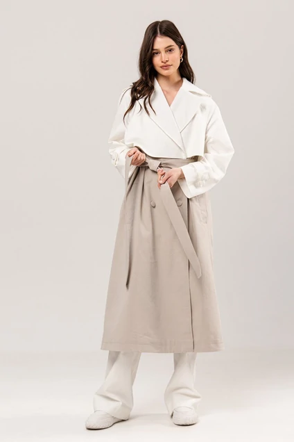 Плащ двубортный А-образного силуэта: