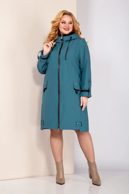 Легкий, элегантный весенний плащ. Изготовлен из плащевой ткани, без утеплителя, на подкладке. Достаточно плотная плащевка, при этом довольно мягкая. Капюшон изделия втачной, регулируется декоративной кулисой. Застежка центральная на молнии (двухбегунковая). По переду рельефные швы в которых расположены действующие карманы на кнопках. Рукав втачной длинный с манжетой и патой на кпопку. Боковые швы смещены в сторону полочки, что зрительно стройнит фигуру. Спинка с отрезной кокеткой и рельефными швами. Низ изделия фигурный. Изделие декорировано вставками черного цвета.