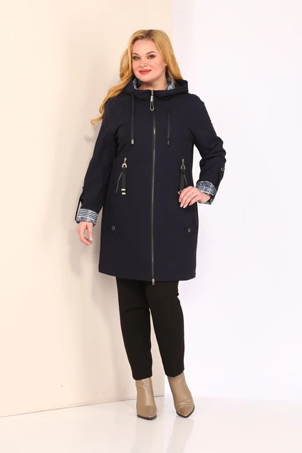 Современный, модный, легкий плащ. Изготовлен из плащевой ткани, без утеплителя, на подкладке. Достаточно плотная плащевка, при этом довольно мягкая. Капюшон изделия втачной, регулируется кулисой. Застежка центральная на молнии (двухбегунковая) с декоративной подвеской. Рукав втачной длинный с манжетой и патой на кнопку. По переду нагрудные вытачки и действующие карманы на молнии с модными подвесками. Спинка с полноценной кокеткой и рельефными швами. Низ изделия регулируется кулисой. Капюшон и манжеты декорированы отделкой.