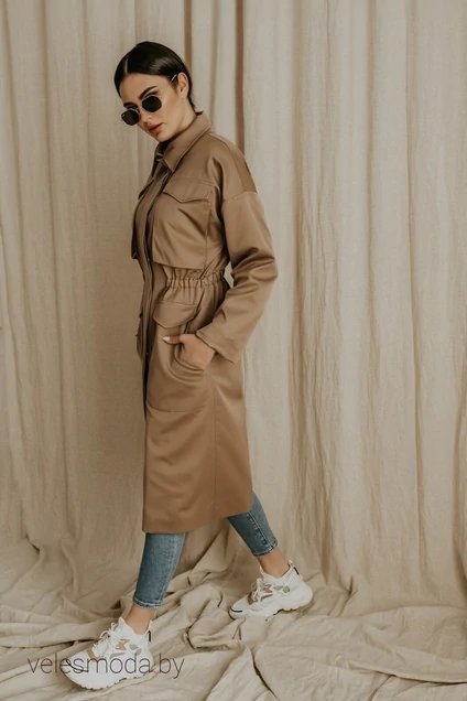 Стильный плащ на подкладке свободного силуэта с центральной потайной застежкой на кнопки.