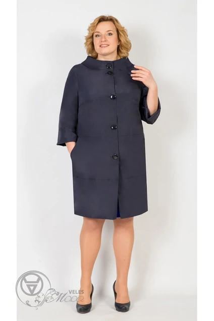 Плащ О-образного силуэта. воротник - цельнокройная стойка. Застежка центральная на петли и пуговицы. Рукав втачной, в нижней части рукава декоративный защип. Спинку плаща украшает печать. Длина изделия - 98 см.