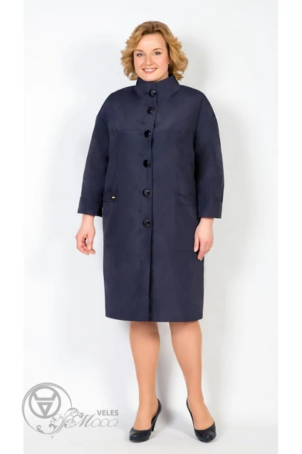 Стильный элегантный плащ длиной за колено из непромокаемого полотна универсального темно-синего цвета с отлетной кокеткой на спинке , удлиненной линией плеча и втачными рукавами с регулируемой длиной, благодаря предусмотренными в них отворотами. Воротник стойка. Впереди центральная бортовая застежка на петли и пуговицы оформленная широкой планкой. На линии груди кокетка, а под ними прямоугольные подрезы с карманами. лаконичный образ плаща поддерживает неброская пришивная фурнитура. В комплекте - пояс. Длина изделия - 100 см.