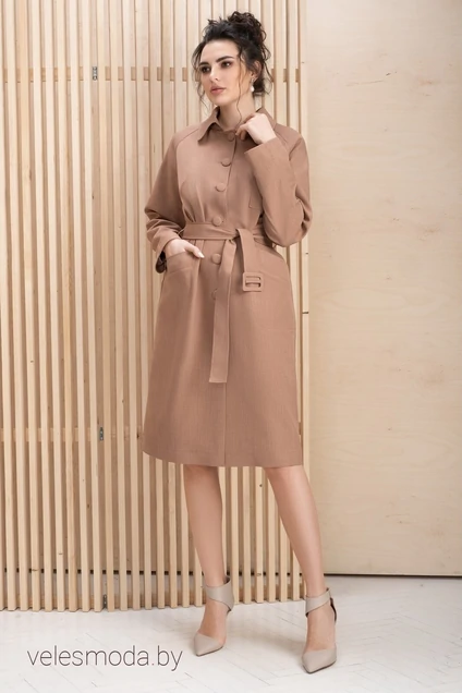 Плащ женский прямого силуэта, на отлетной подкладке, для повседневной носки в весенне-летний период. В комплект к плащу идет завязывающийся съемный пояс с пряжкой (фурнитура может незначительно отличаться от фото), по краю пояса проложена отделочная строчка, ширина шва 0,6 см.