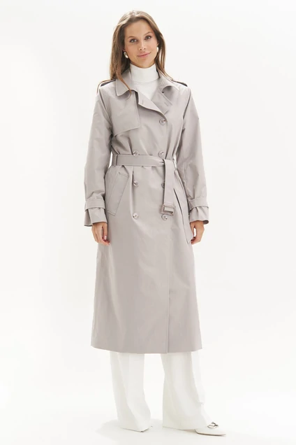 Благодаря регулируемому поясу можно подчеркнуть талию, а лаконичные пуговицы в тон ткани придают завершенность дизайну. Практичные карманы и продуманные детали делают этот плащ идеальным выбором для межсезонья.