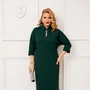 Элегантное женское платье, выполнено в стиле имитация костюма. Платье исполнено из высококачественной плательной ткани с добавлением вискозы, по низу декорировано роскошным французским кружевом, что придает модели особый шарм. Платье по переду с застёжкой на две дизайнерские пуговицы, а также две потайные, в боковом шве потайная молния застежка. Рукав втачной, полной длины. По спинке платья средний шов, по низу разрез. Модель стильная и практичная, невероятно стройнит, прекрасно подойдет для ежедневной носки и торжественного мероприятия, вы будете выглядеть современно и неотразимо.