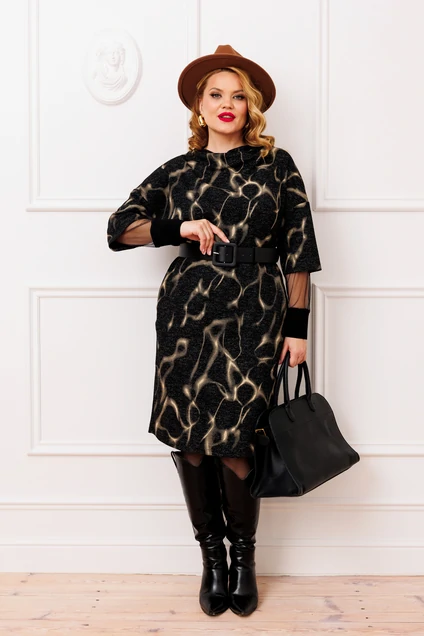 Стильное женское платье прямого силуэта, выполнено из высококачественной трикотажной ткани с модным дизайнерским принтом (ткань мягкая, приятная к телу, хорошо тянется). Горловина хомут, рукав спущенный, с отделкой из сетки с манжетой из трикотажного довяза, в боковых швах функциональные карманы. В комплекте идет съемный кожаный пояс. Модель стильная и практичная, невероятно стройнит, прекрасно подойдет для ежедневной носки, вы будете выглядеть неотразимо.