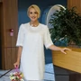 Платье полуприлегающего силуэта, отрезное по линии талии переда, с застёжкой на потайную молнию в среднем шве спинки, с поясом выходящий из рельефных швов завязывающийся по спинке. Перед верху имитации запаха, с рельефными швами и талевыми выточки. Спинка с талевыми выточками и средний шов заканчивающийся шлицей. Рукава реглан, длинные, понизу с притачными манжетами.