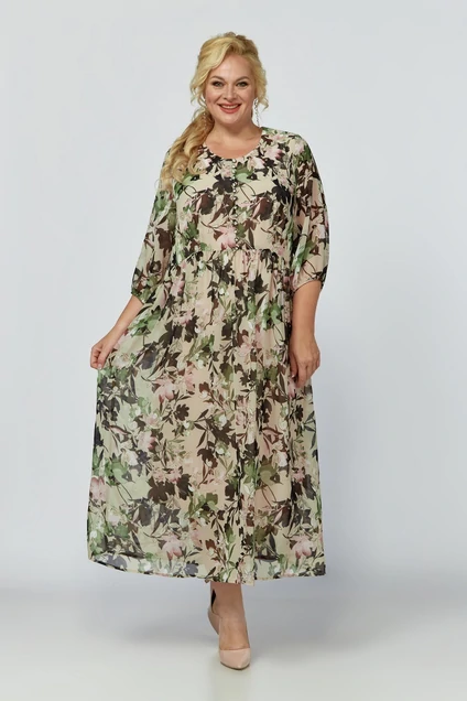 Нежное платье из шифона, прекрасно сидит на любой фигуре и придает образу легкость и женственность. Простые линии придают женскому облику изысканность и лаконичность. Перед платья с отрезным лифом и нижней частью, спинка со средним швом. Приятные эмоции вызывает ряд декоративных пуговиц по среднему шву лифа и небольшие полупрозрачные рукавчики. Аккуратная сборка по шву притачивания нижней части удачно раскрывает всю прелесть этой трепетной ткани. Такое платье достойно стать базовым элементом дамского гардероба. Наряд можно носить и в офис, и на прогулку, и в ресторан, а благодаря А-образному силуэту платья оно подойдет и хорошо сядет на любую фигуру. Платье выполнено из шифона на трикотажной подкладке. Горловина круглая. Длина платья универсальная, поэтому его могут носить девушки и дамы любого возраста. Такое платье призвано подчеркнуть природную женскую красоту и грацию, а также безупречный вкус его обладательницы. Универсальность в сочетании с невесомостью и текстурой материала делают эту модель востребованной в любых случаях. Платье подойдет налюбой случай !