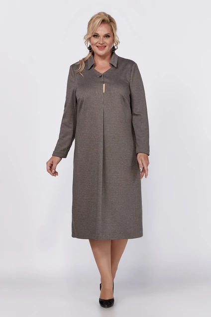Женское платье из трикотажного полотна, без подкладки, прямого силуэта достойно стать базовым элементом дамского гардероба. Благодаря универсальности, наряд можно носить и на работу, в офис, на прогулку и в ресторан. По спинке имеется средний шов. По переду платья есть нагрудные вытачки, мягкая складка по центру от V-образного выреза горловины, в которую вставляется воротник на стойке, в качестве декора используется нашивка контрастного цвета. Рукав втачной, двухшовный, длинный. В боковых швах платья есть карманы. Миди-длина универсальная, платья такой длины могут выбирать девушки и дамы любого возраста. Такое платье призвано подчеркнуть природную женскую красоту и грацию, а также безупречный вкус его обладательницы.
