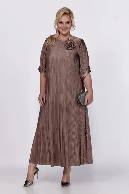 Каждая женщина хочет быть красиво одетой и выглядеть элегантно, ощущая при этом комфорт. Платье из ткани плиссе поможет Вам воплотить задуманное в реальность: оно легкое, удобное в носке, выполнено из мягкой, тонкой и шелковистой ткани, приятной к телу. Легкое винтажное платье с подкладом, обеспечивающим дополнительную защиту от просвечивания, будет уместно в любое время года за счет своей длины макси и свободных рукавов. По спинке, на горловине, обработана капелька на навесную петлю и пуговицу. Рукав втачной, длиной 3/4 с фигурным низом с односторонними складками, с притачной манжетой. Платье декорировано съемным цвкетком. А для тех, кто хочет подчеркнуть линию талии и сделать силуэт слегка облегающим – этого легко добиться, добавив пояс из своего гардероба. Однотонное платье сочетается с различными аксессуарами и обувью, позволяя Вам собрать множество новых уникальных вариантов носки.
