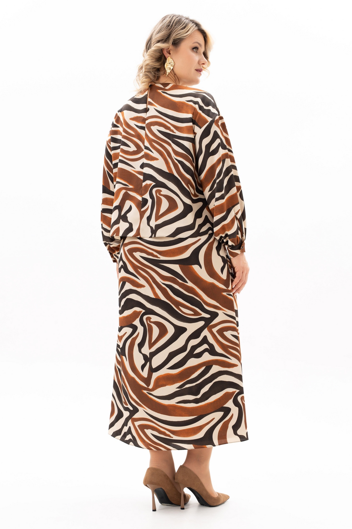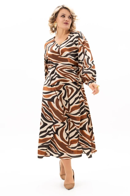 Платье 4129 Algranda (Новелла Шарм) — это модное решение для современных женщин. Коллекция бренда Новелла Шарм предлагает платье из нежного полиэстера с добавлением эластана, что делает его комфортным и практичным в носке. Фасон с А-силуэтом и свободным лифом обеспечивает идеальную посадку, а спущенные рукава с декоративными разрезами добавляют стиль. Длина изделия составляет 132 см, Ддина рукава 61 см. Универсальный выбор для офиса, ресторана или театра, особенно в осеннее или весеннее время. Платье выполнено в сочетании коричневых и бежевых оттенков, что создает гармоничный и заметный образ.