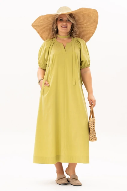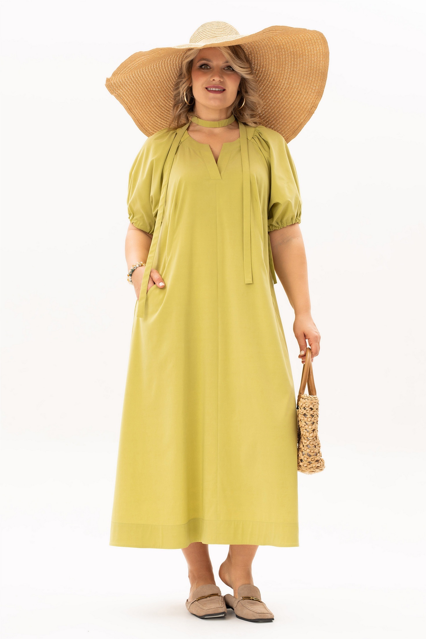 Платье 4155 Algranda (Новелла Шарм) — это стильное летнее платье, идеальное для создания лёгкого образа. Коллекция бренда Algranda сочетает в себе комфорт и современный дизайн. Платье выполнено из лёгкой ткани с содержанием вискозы, что позволяет коже дышать и обеспечивает комфорт в тёплую погоду. Свободный А-образный крой и длина миди (130 см) делают его подходящим для повседневных прогулок и встреч. Съёмный пояс-завязка позволяет варьировать силуэт от свободного до подчёркивающего фигуру. V-образный вырез и элегантные рукава-фонарики с кулисками добавляют оригинальности. Оливково-лаймовый оттенок подчеркивает загар, а длина рукава с плечом составляет 41 см.