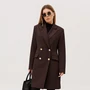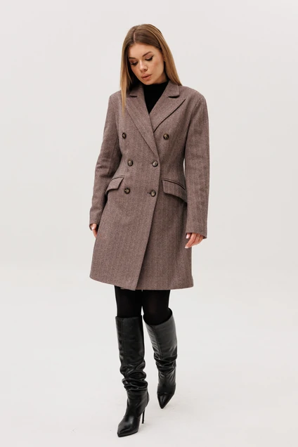 Элегантное платье-пиджак темно-коричневого цвета, выполненное из качественной теплой ткани. Модель прилегающего силуэта эффектно подчеркивает фигуру. Платье оснащено застежкой на петли и пуговицы, что добавляет изысканности в образ. Наличие функциональных карманов по переду удобно для повседневного использования. Рукава дополнены шлицами, обеспечивая свободу движений. Подкладка обеспечивает дополнительный комфорт при носке. Это идеальный выбор для стильного и практичного гардероба.