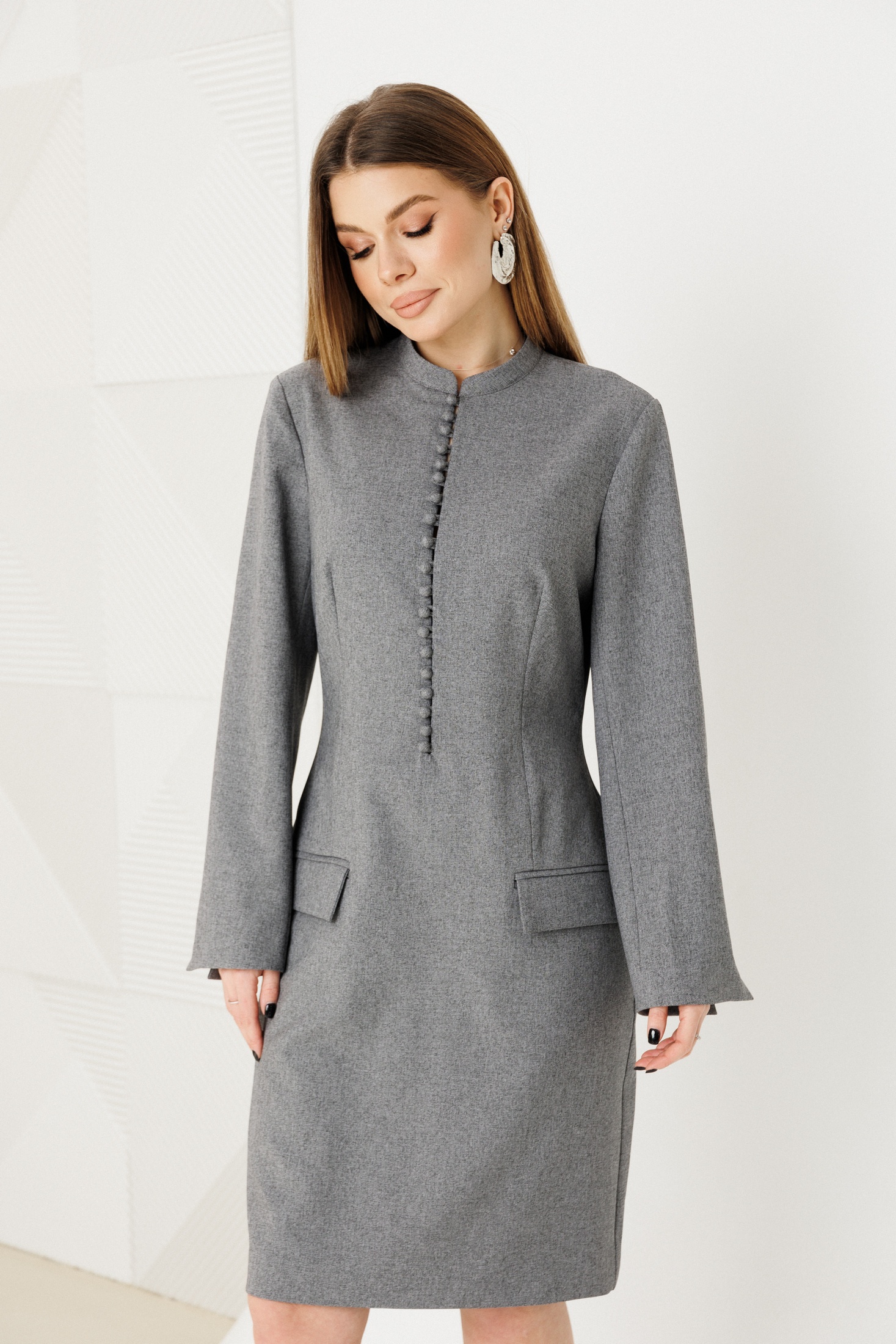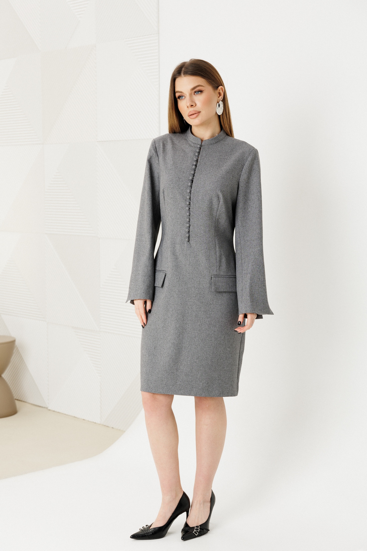 Платье 1139 серый Ambera style представляет собой идеальное сочетание стиля и комфорта. Коллекция бренда Ambera style включает это женское приталенное платье, выполненное из костюмной ткани. Материал содержит вискозу, которая придаёт мягкость и легкость. Платье имеет имитацию застежки на петли-пуговицы и воротник-стойка, что подчеркивает его элегантный характер. Застежка на молнию по спинке и шлицы на рукавах добавляют практичности. Серый цвет делает его универсальным выбором для офиса или деловых встреч. Идеально подходит для осеннего и весеннего сезонов, это платье будет великолепным выбором для работы.