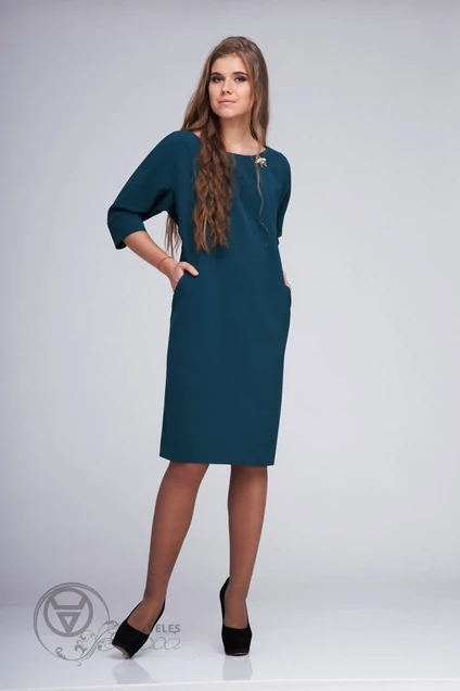 Однотонное платье с удачными подрезами для создания модного силуэта и прекрасного облегания. Съёмная брошь –пчела. длина платья 110, длина рукава 58 см