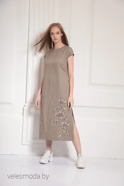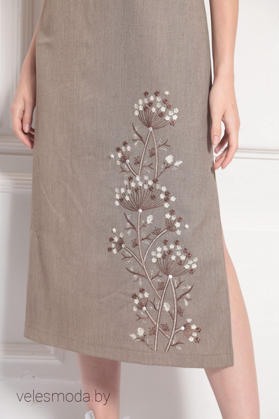 Натуральное платье с дизайнерской вышивкой "Соцветия". По боковым швам разрезы. Молния по спинке. Изделие без подкладки.