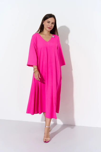 Легкое женское платье из текстильной ткани. Идеальный вариант в жаркую погоду для офиса, прогулки или праздничного выхода. Достаточно обыграть его подходящими аксессуарами и обувью. Модель расширена к низу, по бокам функциональные карманы, рукав 3/4 длины. По полочке и спинке идет V-образный вырез горловины. Платье подойдет на любую фигуру, сроет все недостатки. Длина по спинке (от плечевого шва): -125 см. Длина рукава: 45 см