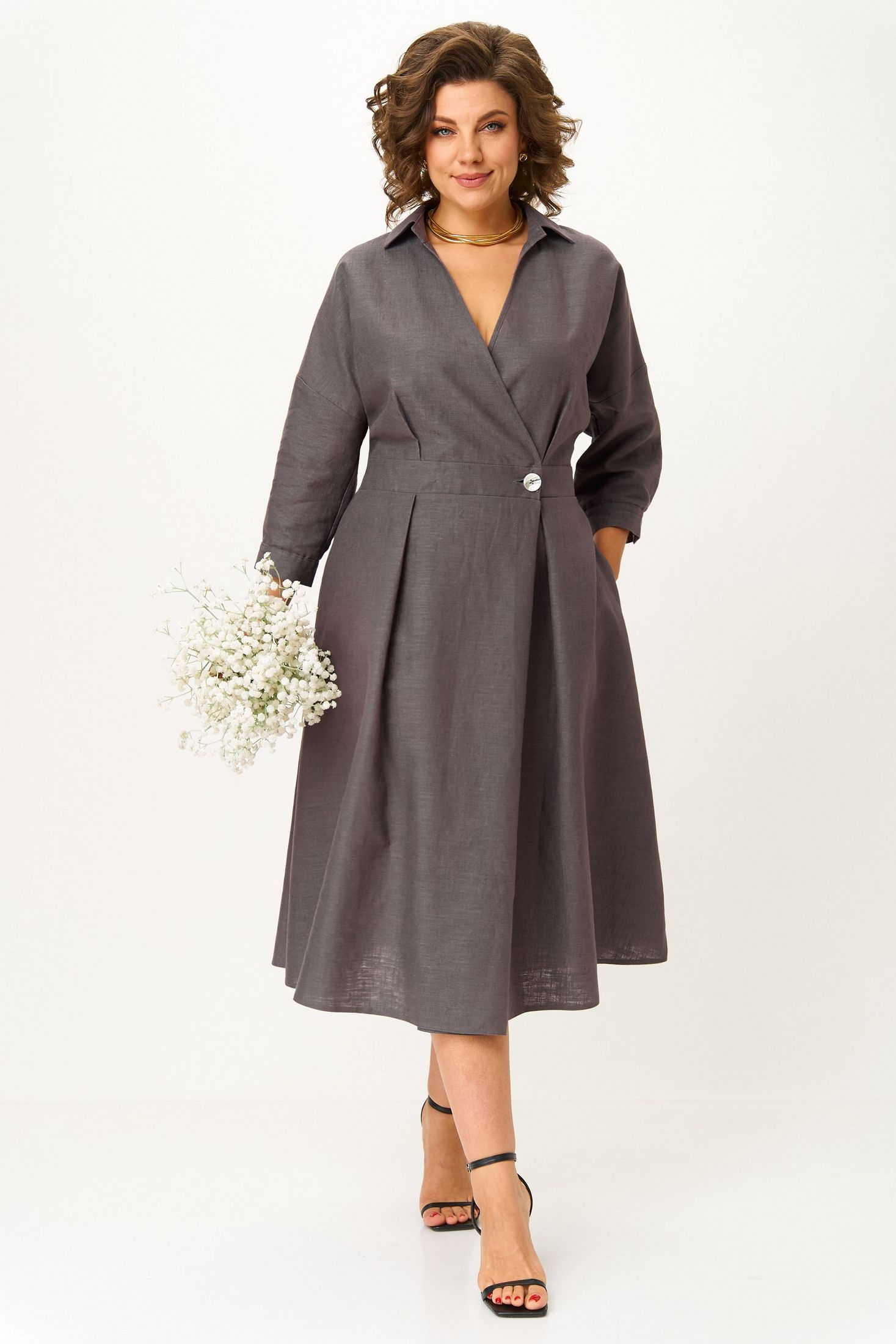 Элегантное женское палтье из натуральной ткани (лен) необычного кроя станет изюминкой вашего гардероба. Платье полуприлегающего силуэта, отрезное по линии талии со спущенным плечом. Рукав 3/4 длиный на отрезной манжете. По полочке идут защипы-складки в верхней и нижней частях, запах - на петли и пуговицы по подрезу. По нижней части платья запах идет в виде складки. По спинке кокетка со складкой, по подрезу вставлена резинка. Юбка-полусолнце с односторонними складками по полочке, по бокам карманы. По горловине воротник на отрезной стойке. Длина по спинке: 117см. Длина рукава с манжето 29см.