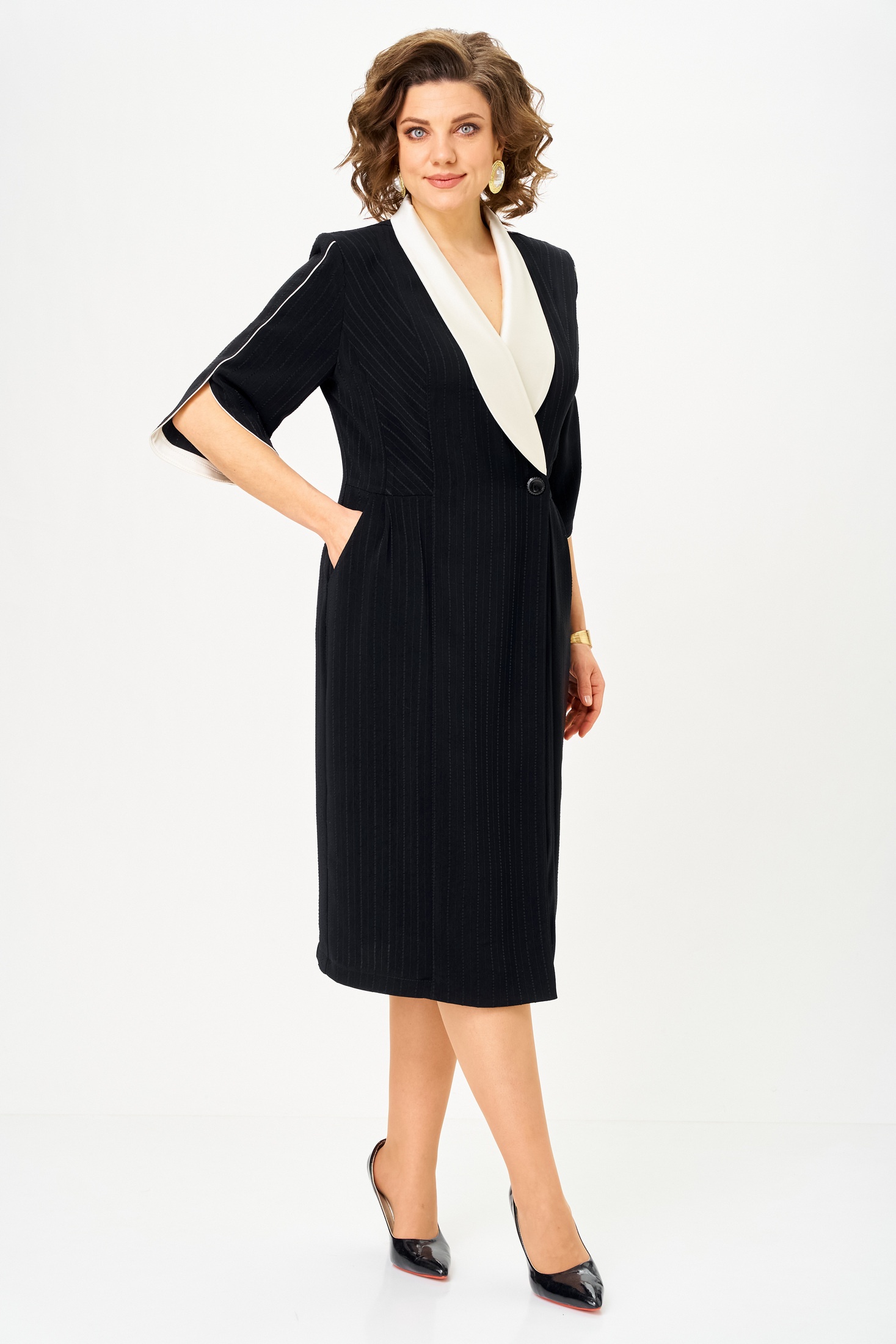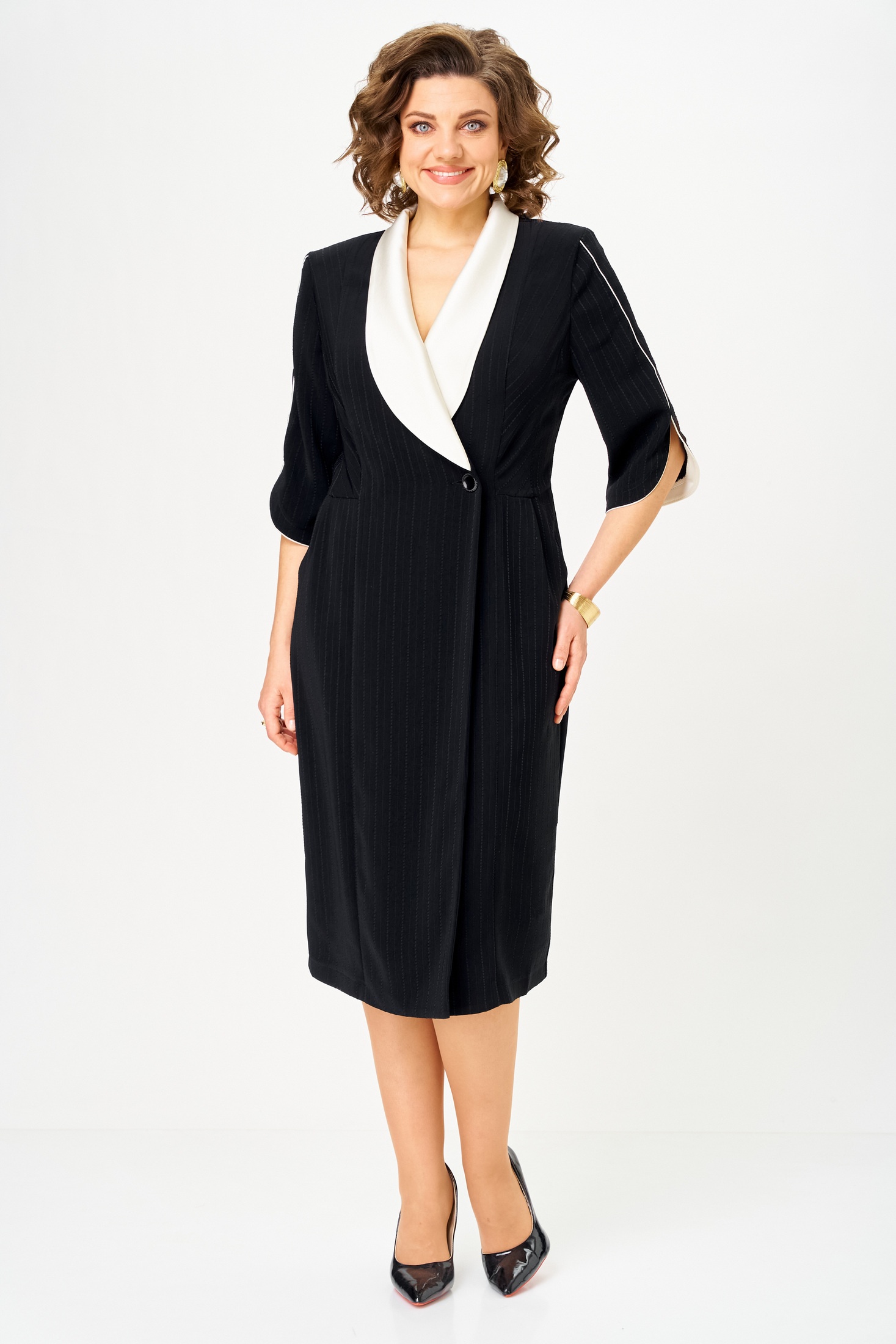 Платье 1308 черный ANASTASIA MAK идеально подходит для стильных и уверенных в себе женщин. Коллекция бренда ANASTASIA MAK выполнена из полиэстера, что придаёт ткани лёгкость и износостойкость. Полуприлегающий силует, длина за колено и двубортная застежка добавляют изделию утончённости. Контрастная V-образная горловина с воротником апаш и длинные рукава 3/4 делают это платье превосходным выбором для офиса и повседневного ношения в осенний и весенний сезоны. Практичные карманы и стильные складки на талии подчеркивают уникальность модели. Черный цвет и минималистичный дизайн позволяют комбинировать платье с любыми аксессуарами.