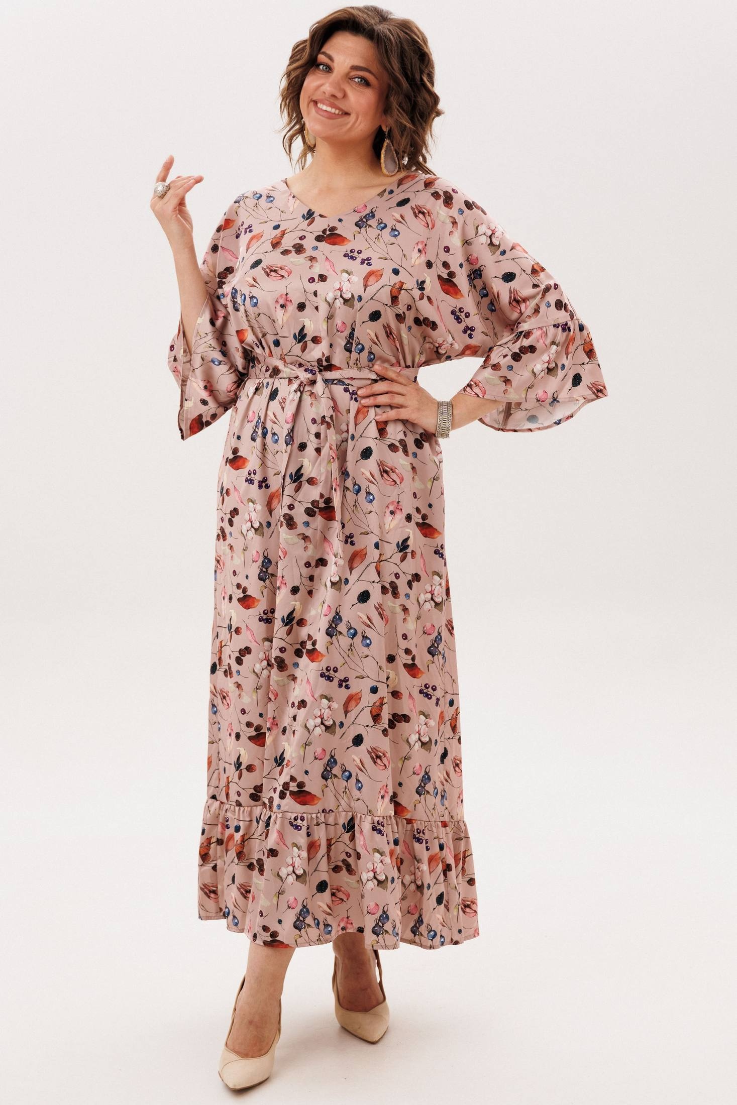 Платье 1822 листья и ягоды от Anelli — идеальный выбор для вашего гардероба. Коллекция бренда Anelli предлагает это нарядное платье из вискозы, которое обеспечивает невероятную мягкость и комфорт. Свободный прямой крой и элегантный V-образный вырез с шнуровкой на спинке добавляют образу женственности. Цельнокроенные рукава с воланами и съемный пояс акцентируют талию, а практичные карманы добавляют удобства. Цветочный принт в сочетании с легкой тканью делают платье идеальным для весны и лета. Это платье подходит для повседневного ношения и праздничных мероприятий, создавая нежный и романтичный образ.
