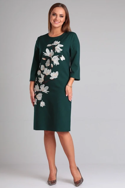 Классическое женское платье прекрасно подойдет на каждый день. На работе, на празднике Вы будете выглядеть элегантно и современно, изящно и строго. Платье приталенного силуэта, с округлым вырезом горловины. По переду платья декоративная вышивка и нагрудные вытачки. Спинка с талиевыми вытачками, средним швом и застежкой молнией сверху. Рукав втачной, длиной 3/4. Длина платья: 99 см