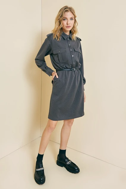 Платье полуприлегающего силуэта, отрезное по линии талии на эластичной тесьме. На спинке обработана кокетка, на полочке - нагрудные карманы с клапанами. Воротник -стояче-отложной, застежка центральная на петли и пуговицы. Рукав длинный втачной с манжетой. Строгие, лаконичные платья пользуются особой популярностью не только в качестве офисного дресс-кода. Такое платье отлично подойдёт для тех, кому нравится в свой базовый гардероб добавлять простые, но качественные вещи. При желании можно подчеркнуть талию тонким поясом. Возможно отличие фотографии по оттенку, связанное с разной цветопередачей монитора.