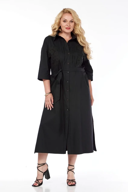 Платье - рубашка вытягивает силуэт и создает актуальный образ. Платье в длине миди с широким рукавом 3/4 подойдет как для деловых встреч в офисе, так и для прогулок по городу. Изящная планка на пуговицах и рубашочный воротник добавляет образу нотки строгости. По желанию талию можно подчеркнуть поясом. По бокам разрезы. Длина платья - 125 см