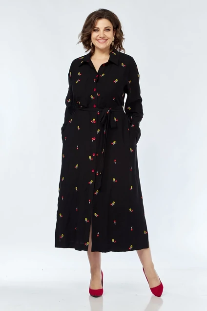 Длинное платье-рубашка отлично подойдет для повседневных и выходных образов. Благодаря свободному крою, оно придает ощущение комфорта и свободы движения. Застежка на петли-пуговицы. Длинные рукава с патой, отложной воротник. В боковых швах карманы и разрезы.